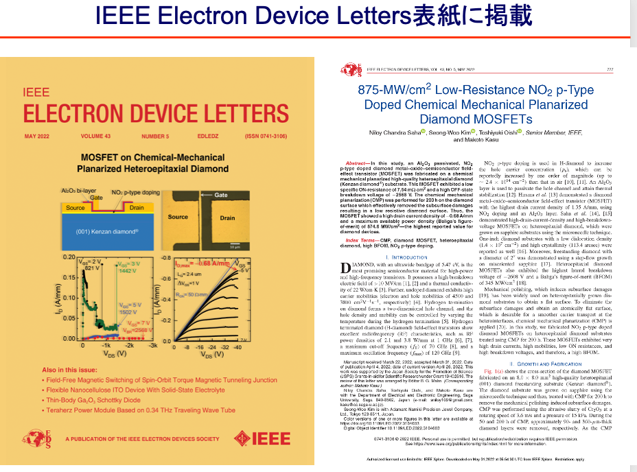 半導体では最も権威のある論文誌、米国電気電子学会、IEEE Electron Device Lettersに掲載され、Cover pageに選ばれました。[image; IEEE Electron Device Letters表紙に掲載]