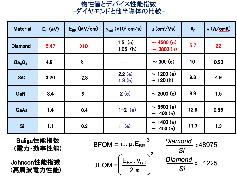 2002年にはダイヤモンドの優れたパワー半導体、高周波半導体の性能を発表し、「究極の半導体」(Ultimate Semiconductor)と名付けました。